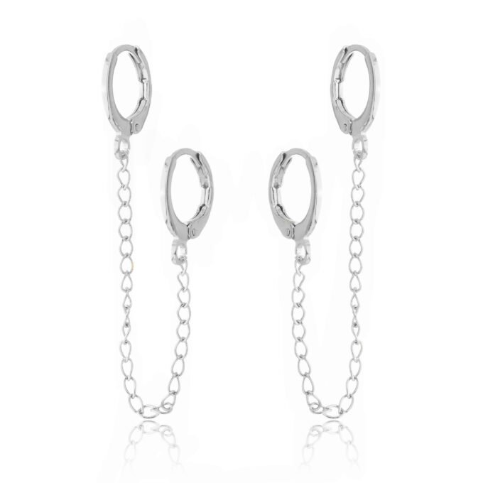 MODELO: Brinco Corrente Dois Furo Dourado banhado com 100 milésimos de prata 925.