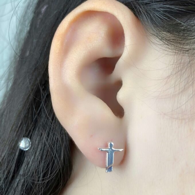 MODELO: Brinco Cristo Redentor banhado com 100 milésimos de prata 925.