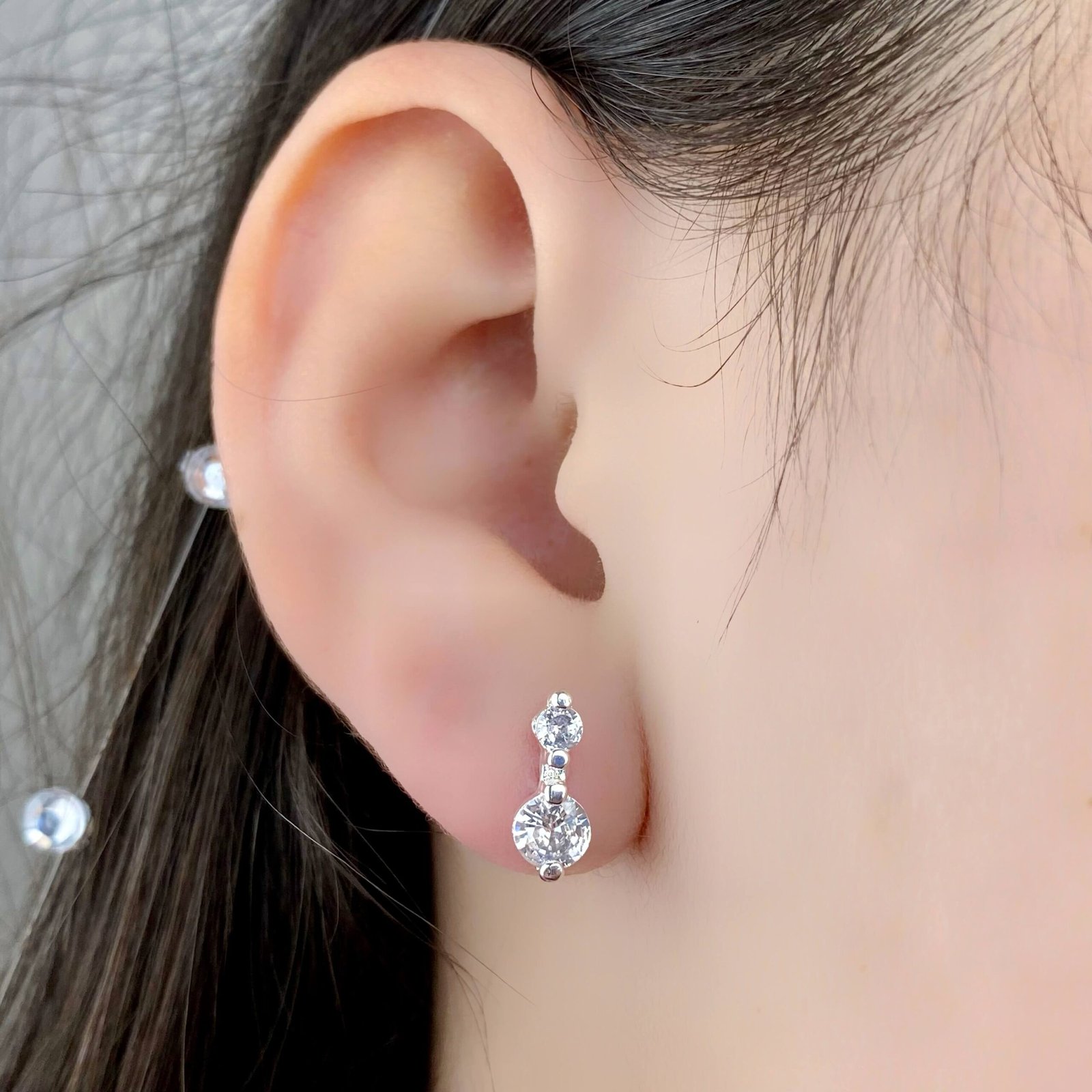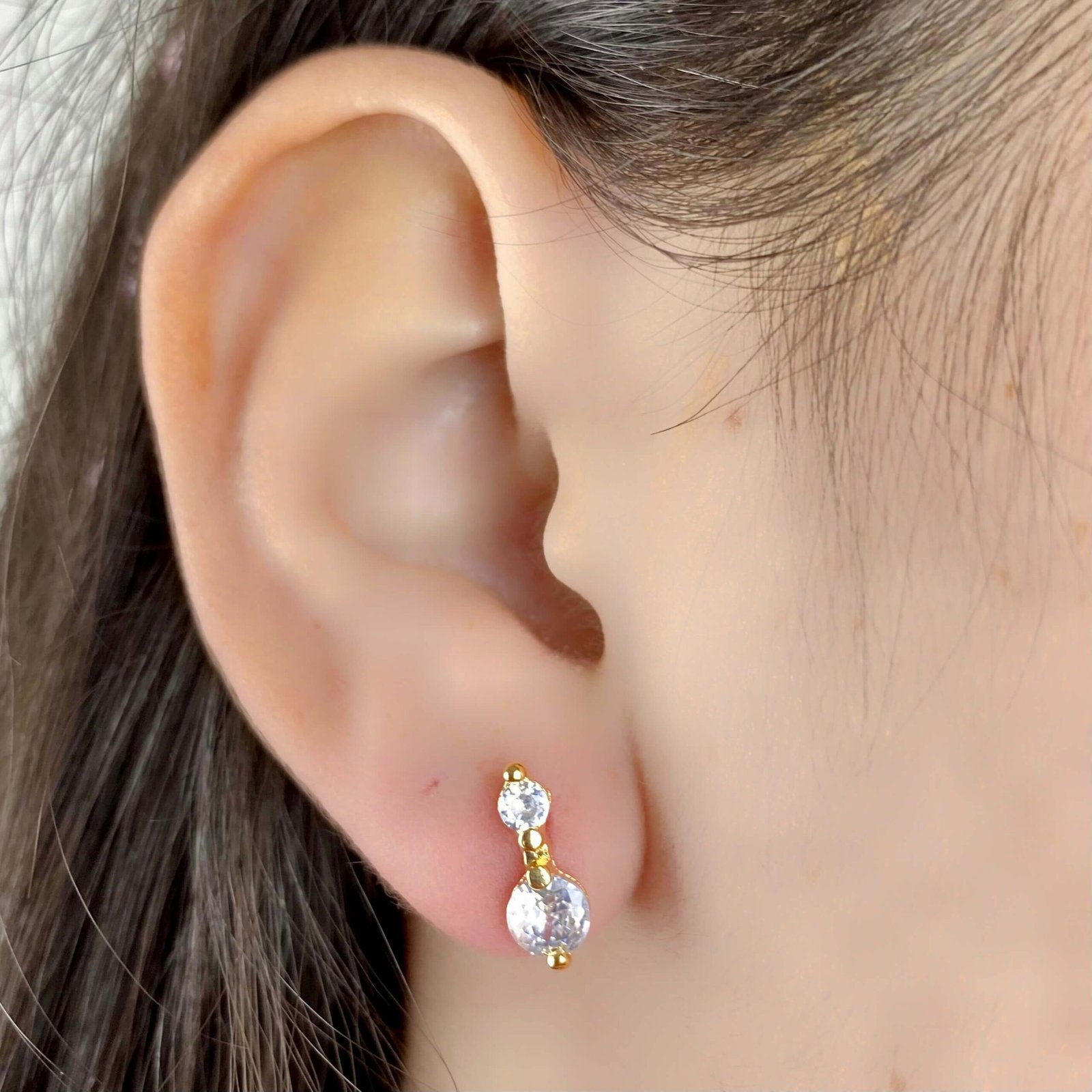 MODELO: Brinco Duplo Cravejado banhado com 100 milésimos de prata 925.