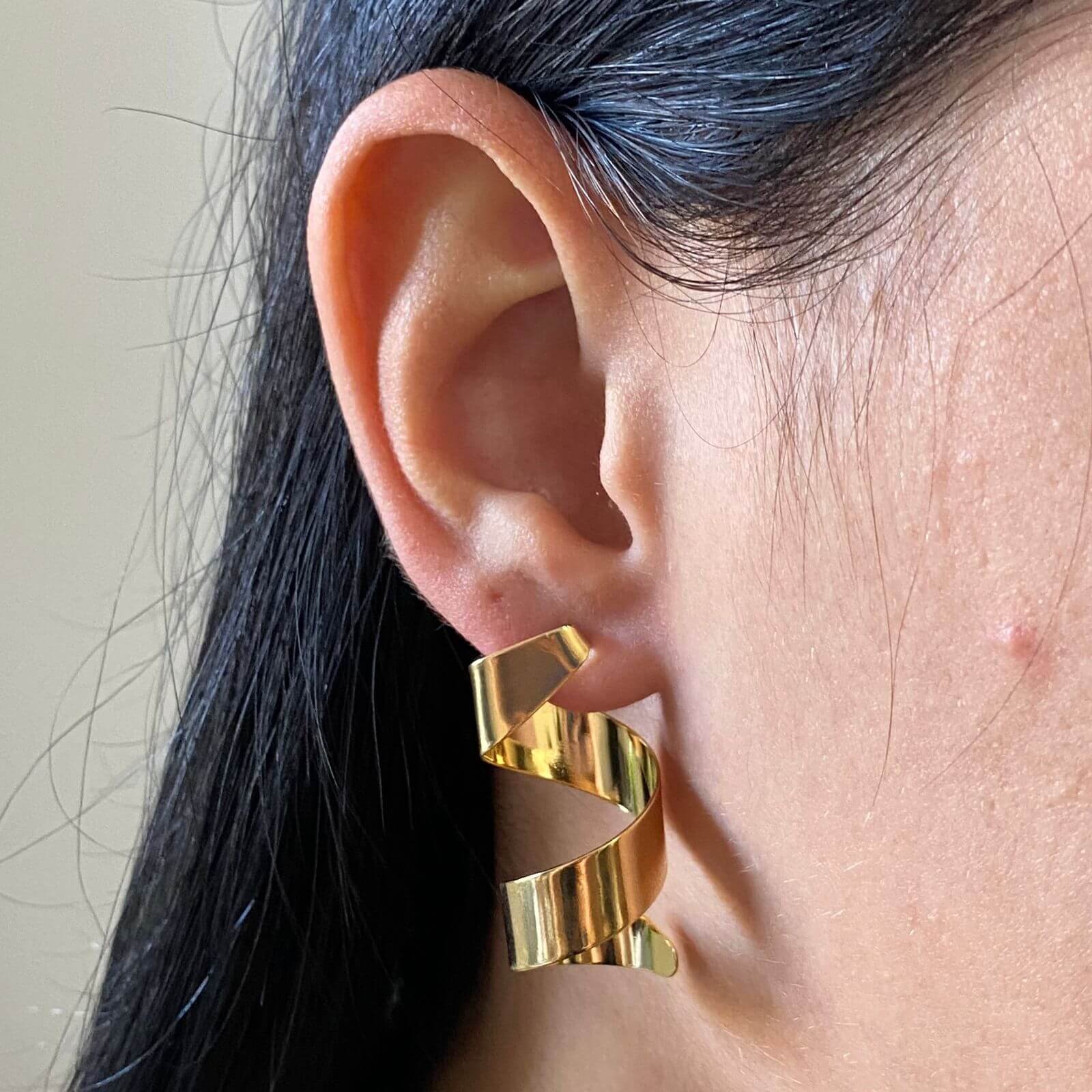 MODELO: Brinco Espiral Dourado banhado com 100 milésimos de prata 925.