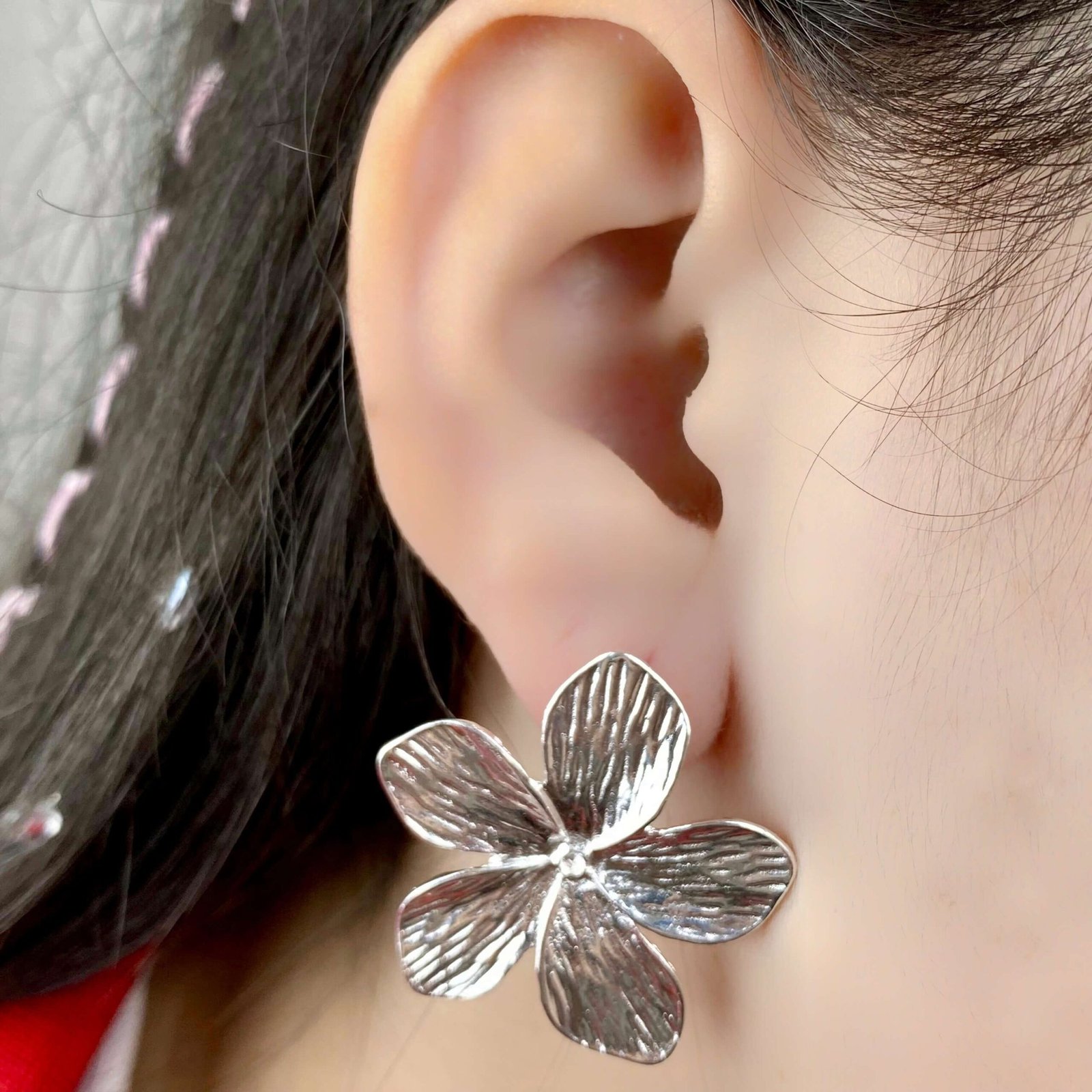MODELO: Brinco flor 5 pétalas banhado com 100 milésimos de prata 925.