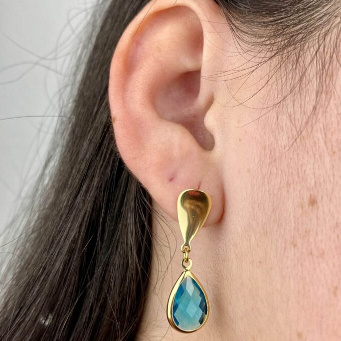 MODELO: Brinco Gota Com Gota De Pedra Zircônia Azul Claro banhado com 7 milésimos de ouro 18k.