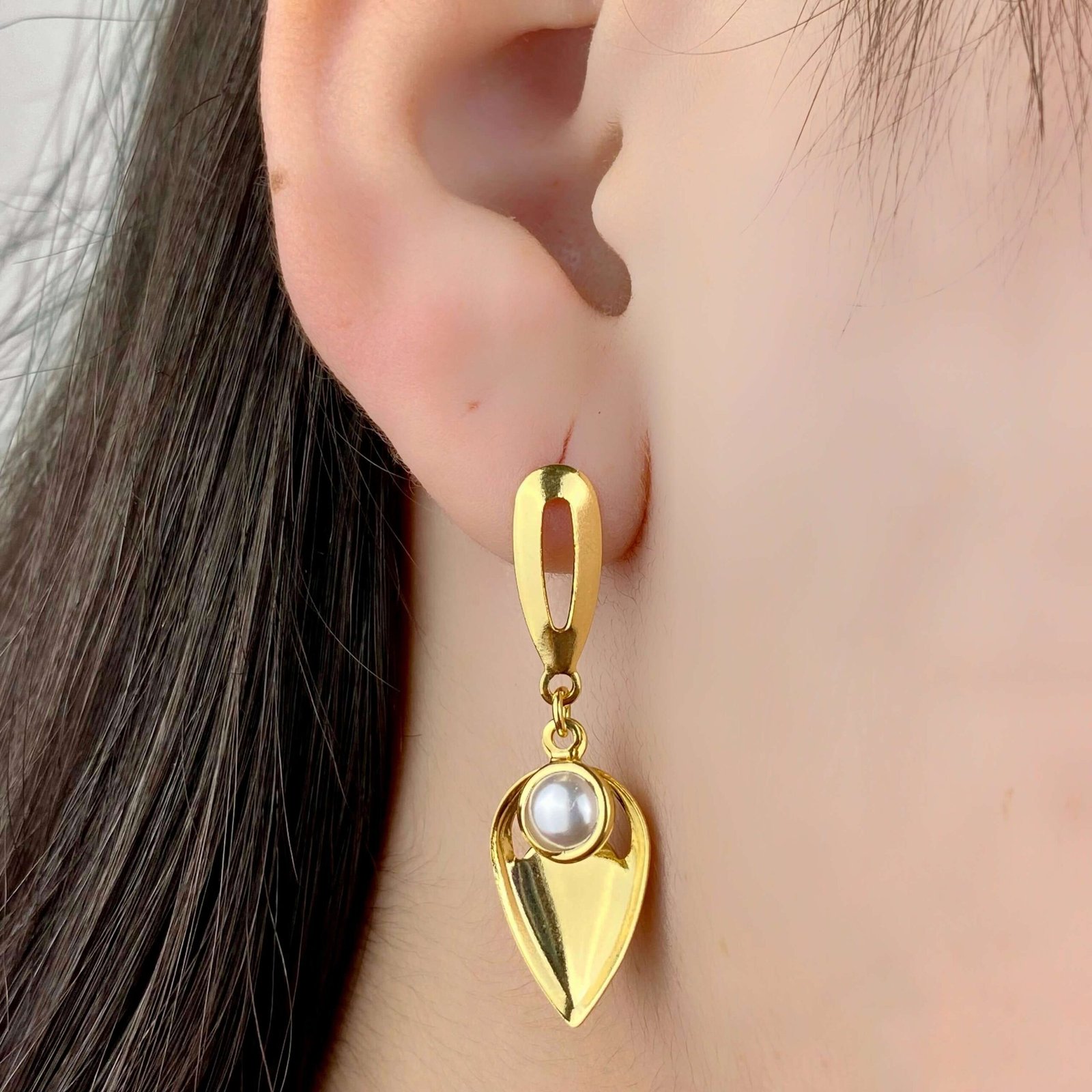 MODELO: Brinco Gota Com Perola banhado com 7 milésimos de ouro 18k.