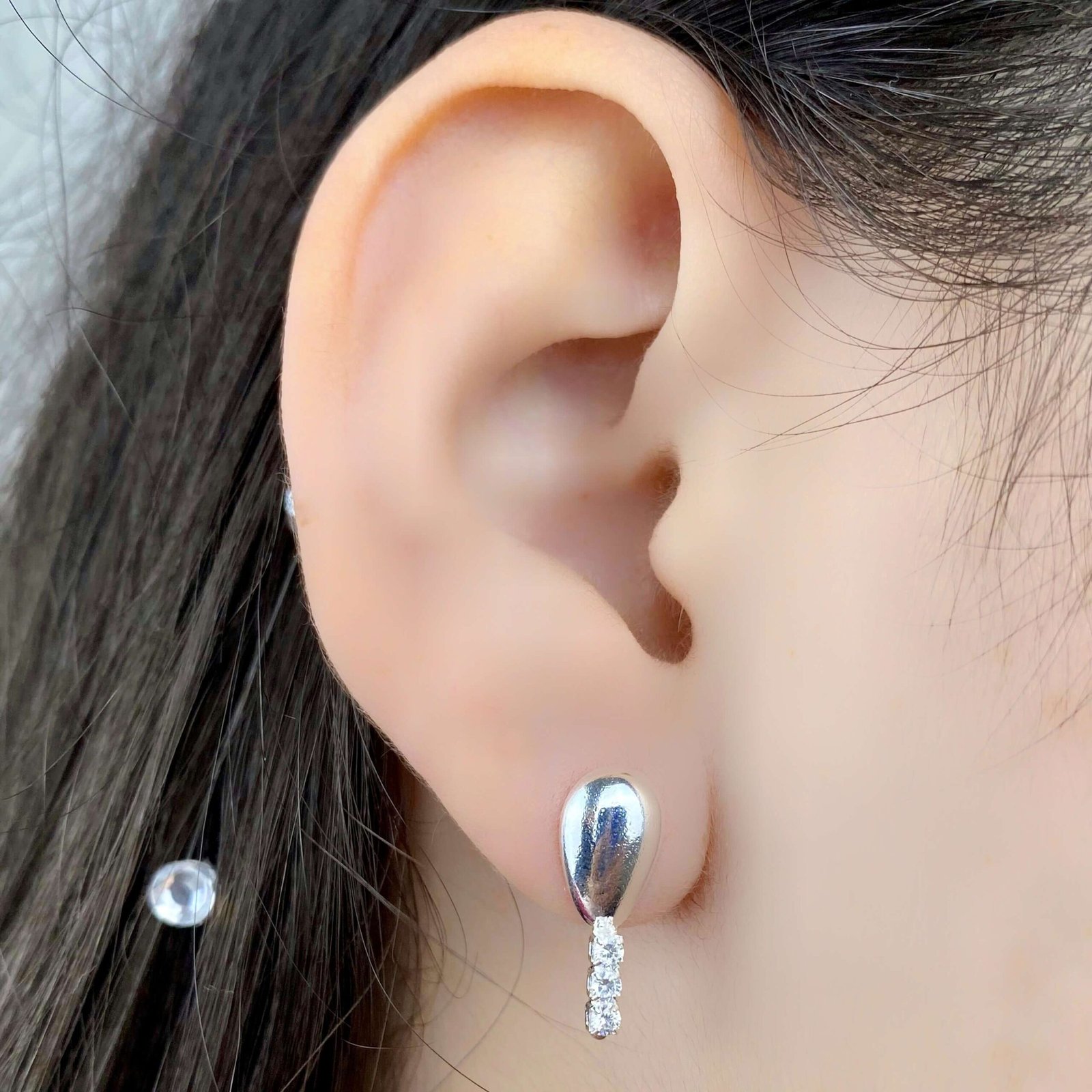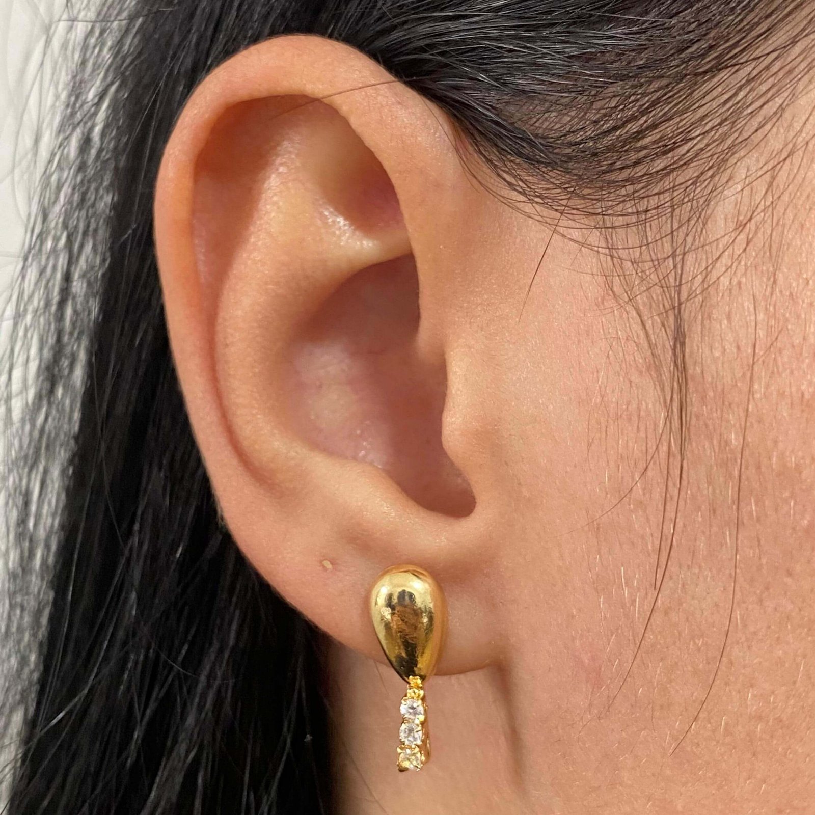 MODELO: Brinco Gota Com Tres Pedras Zirconia Cravejada banhado com 7 milésimos de ouro 18k.