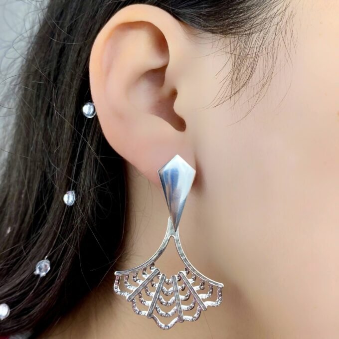 MODELO: Brinco Leque Detalhado banhado com 100 milésimos de prata 925.