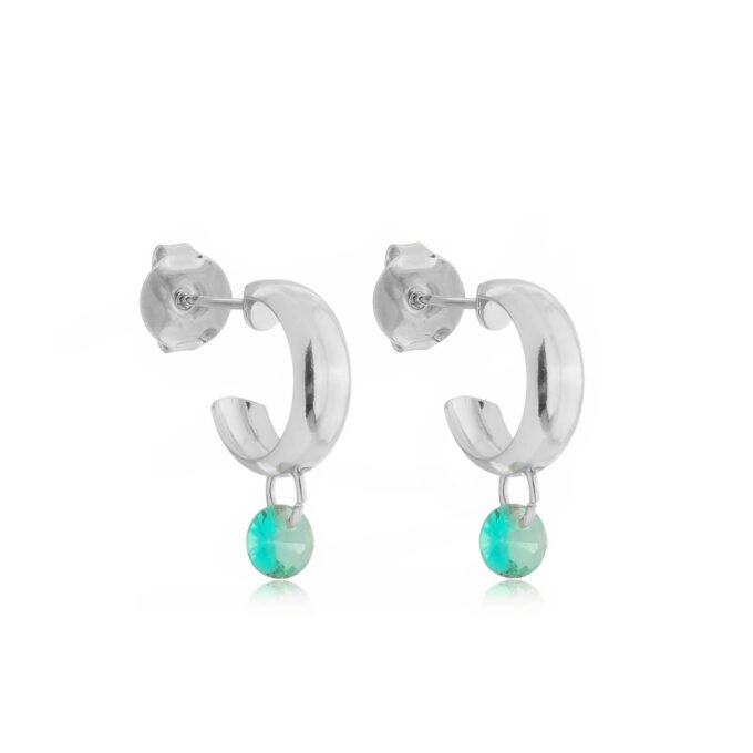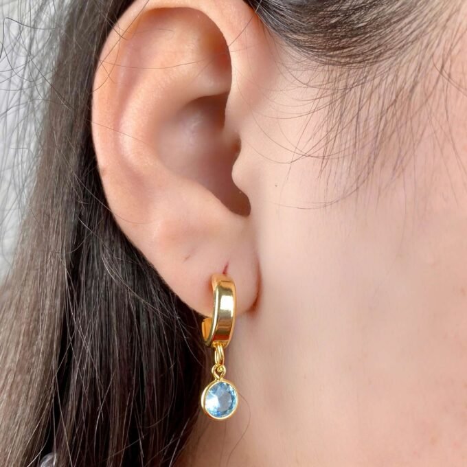 MODELO: Brinco Meia Argola Com Pingente Azul Zircônia banhado com 100 milésimos de prata 925.