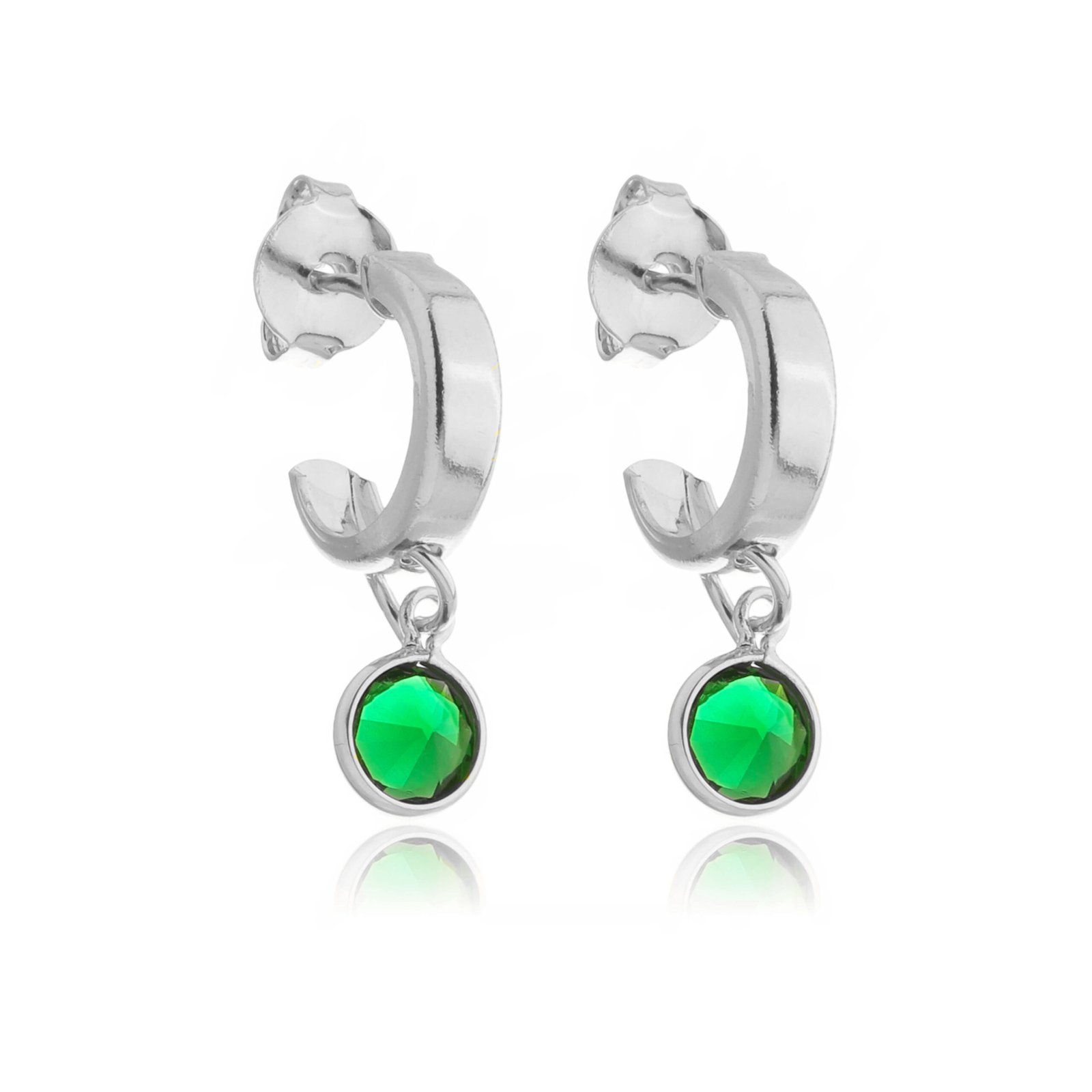 MODELO: Brinco Meia Argola Com Pingente Zircônia Verde banhado com 7 milésimos de ouro 18k.