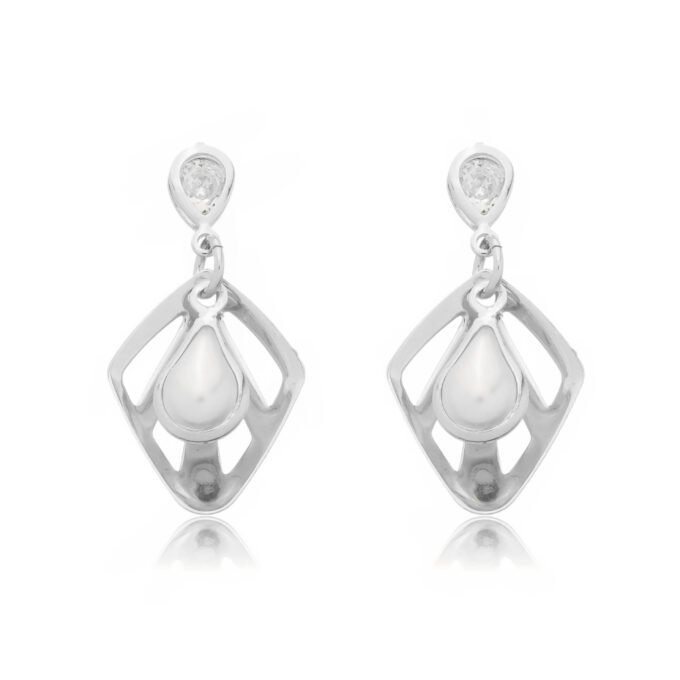 MODELO: Brinco Oval Com Perola Zirconia Cravejada banhado com 100 milésimos de prata 925.