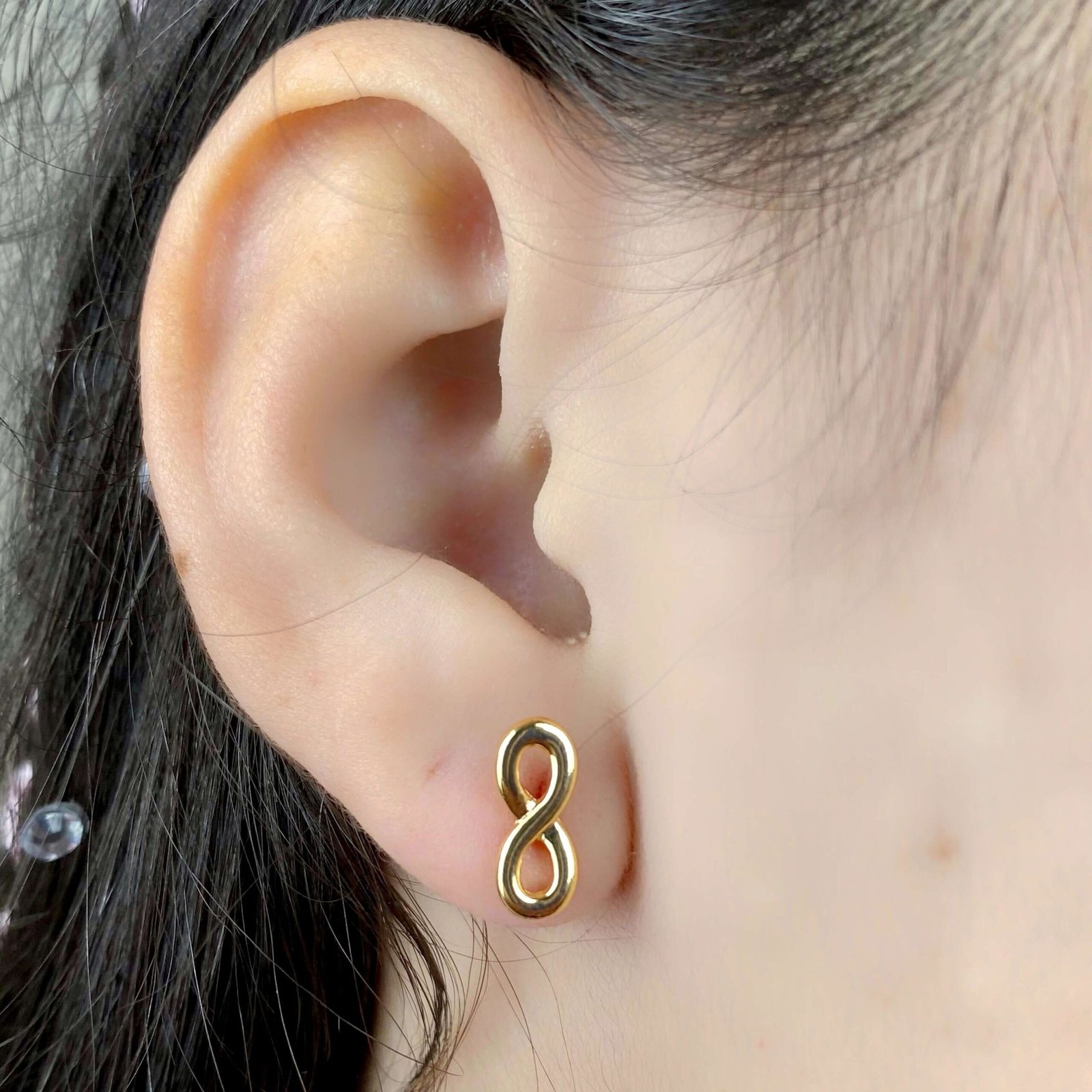 MODELO: Brinco símbolo infinito banhado com 7 milésimos de ouro 18k.