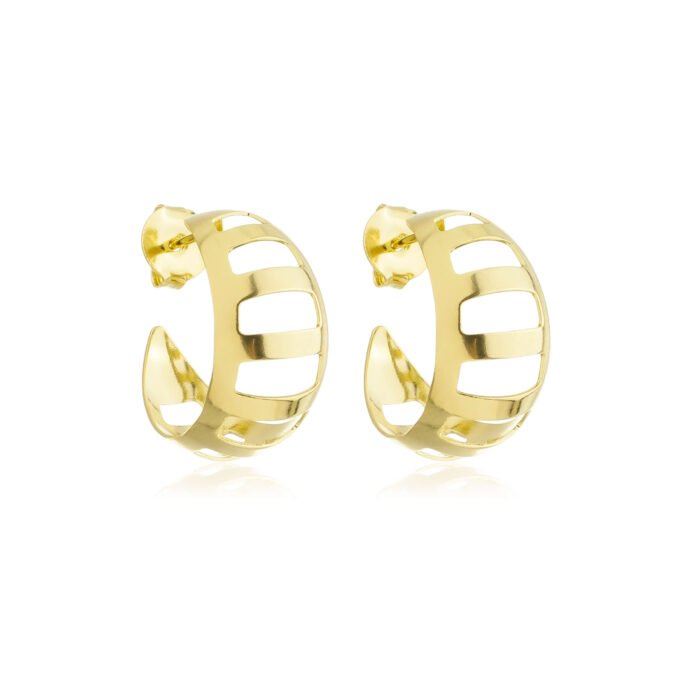 MODELO: Brinco Tulipa Argola Com Detalhe Vazado banhado com 7 milésimos de ouro 18k.