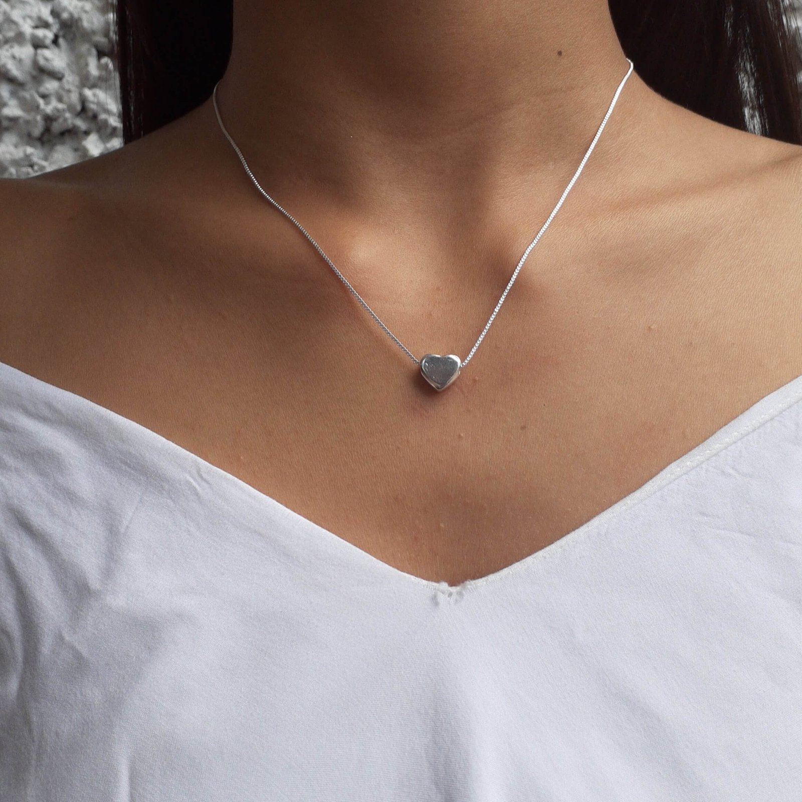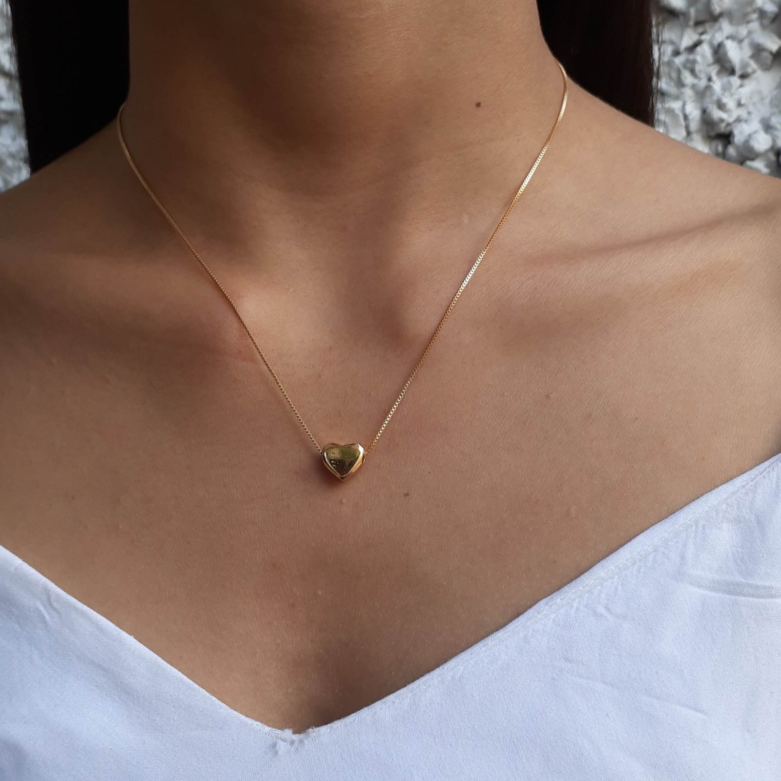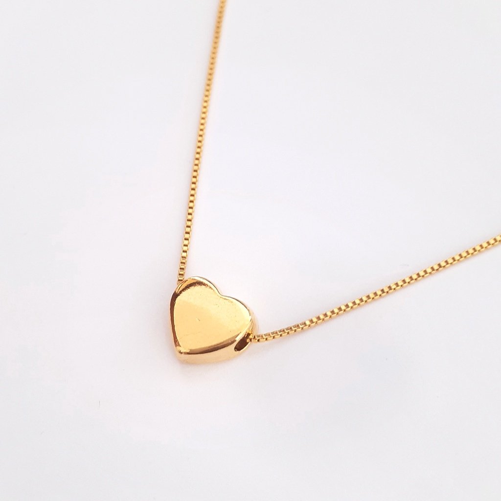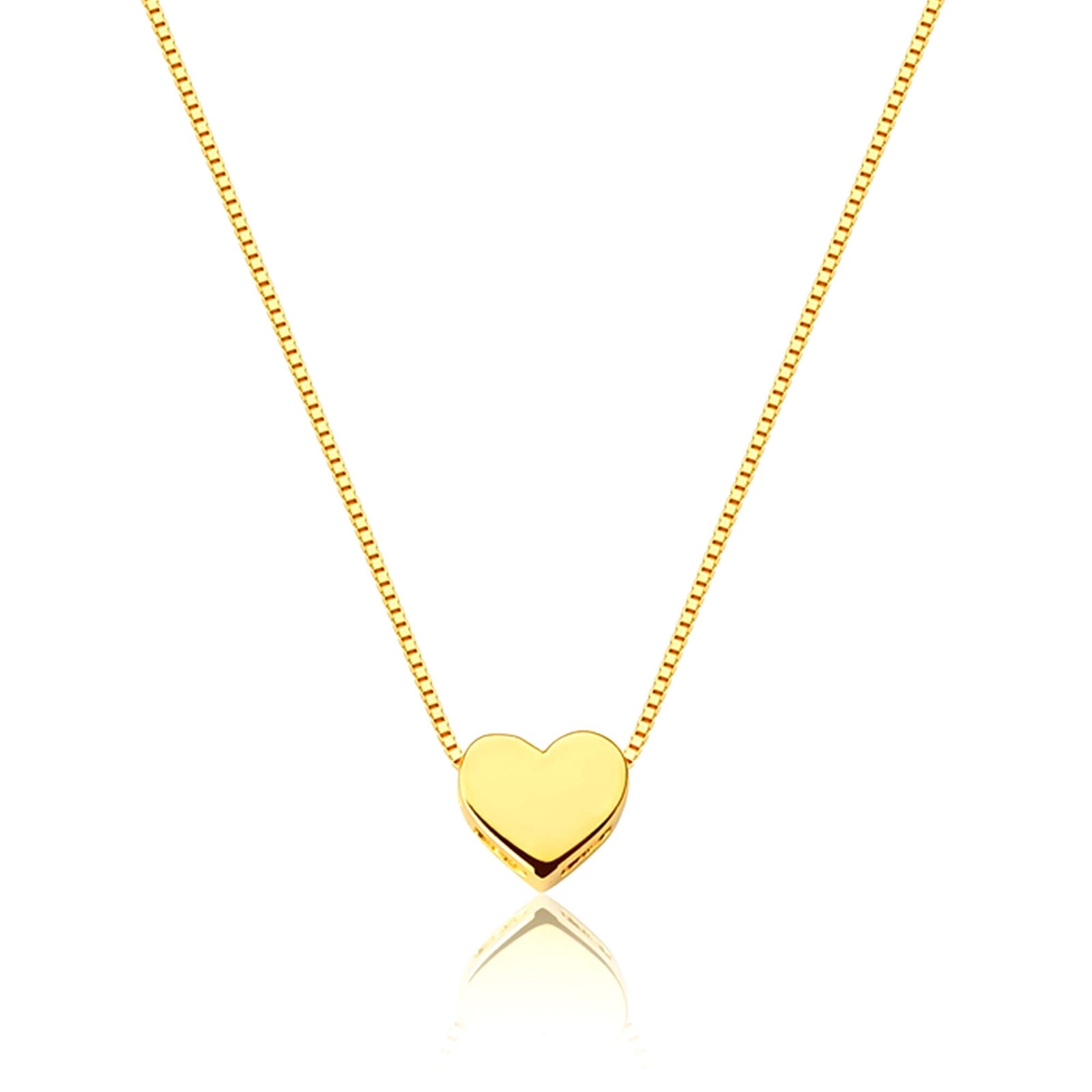 MODELO: Colar com pingente passante de coração banhado com 100 milésimos de Prata 925.
