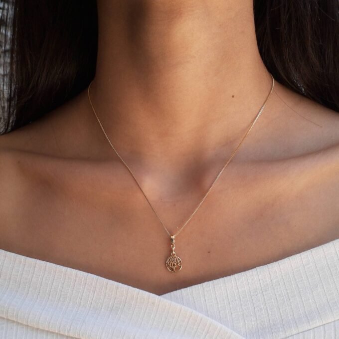 MODELO: Colar feminino de Arvore Da Vida banhado com 7 milésimos de ouro 18k.