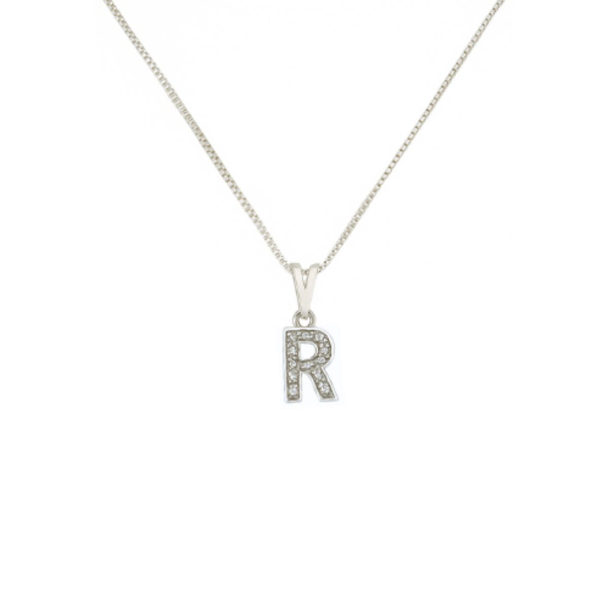 MODELO: Colar feminino de Letra R Cravejado banhado com 100 milésimos de prata 925.