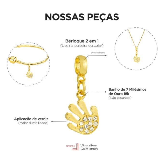 Somos uma fábrica de Semijoias Premium e a única do Brasil com berloques 2 em 1, onde você pode usar na pulseira e no colar. São mais de 1 mil modelos únicos para você escolher.