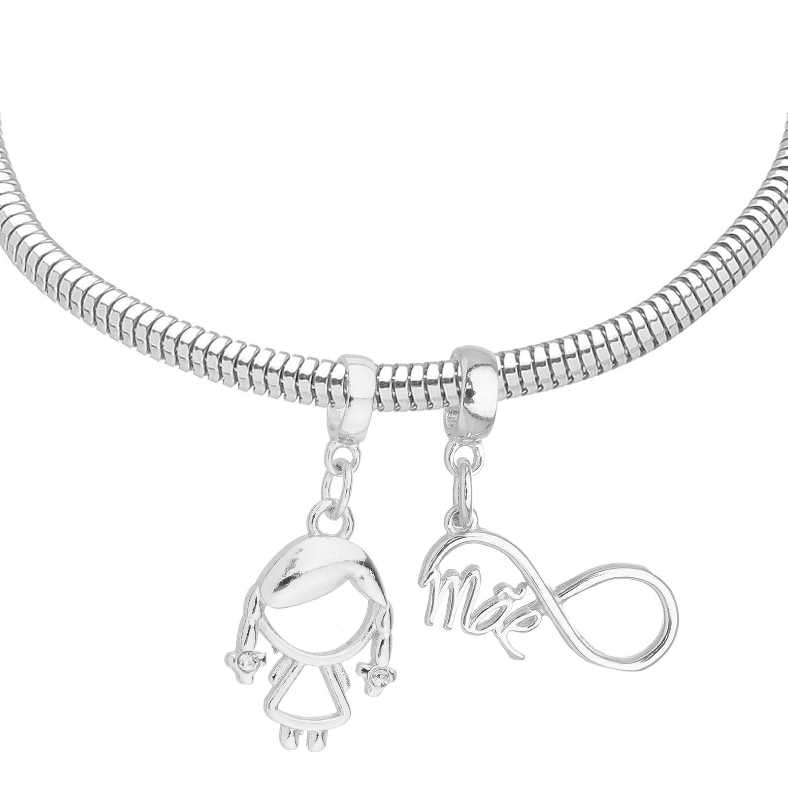 Pulseira Mãe e Filha Berloque Banhado a Prata 925