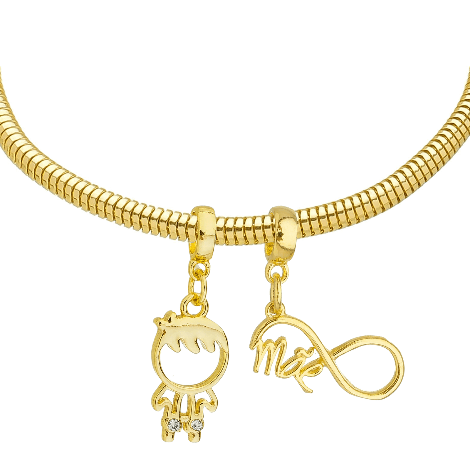 MODELO: Pulseira de Mãe e Filho banhada com 7 milésimos de ouro 18k.