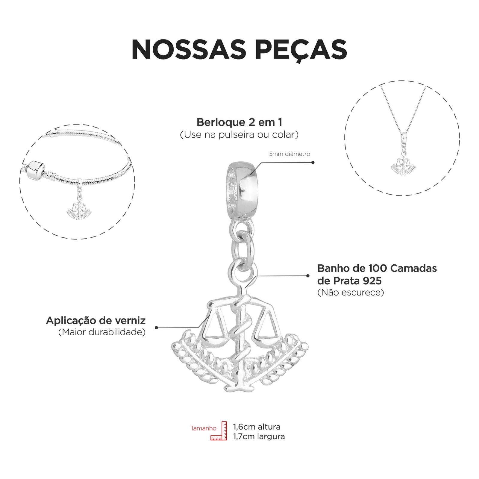 Peça banhada com 100 milésimos de prata 925, aplicação de verniz e 1 ano de garantia.