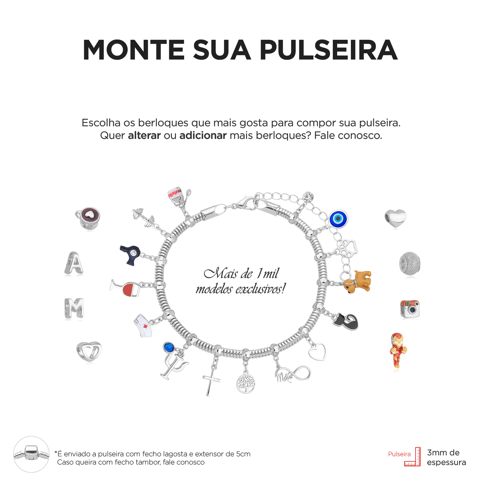 Somos uma fábrica de Semijoias Premium e a única do Brasil com berloques 2 em 1, que podem ser usados tanto na pulseira quanto no colar. São mais de 1.000 modelos exclusivos para você escolher.