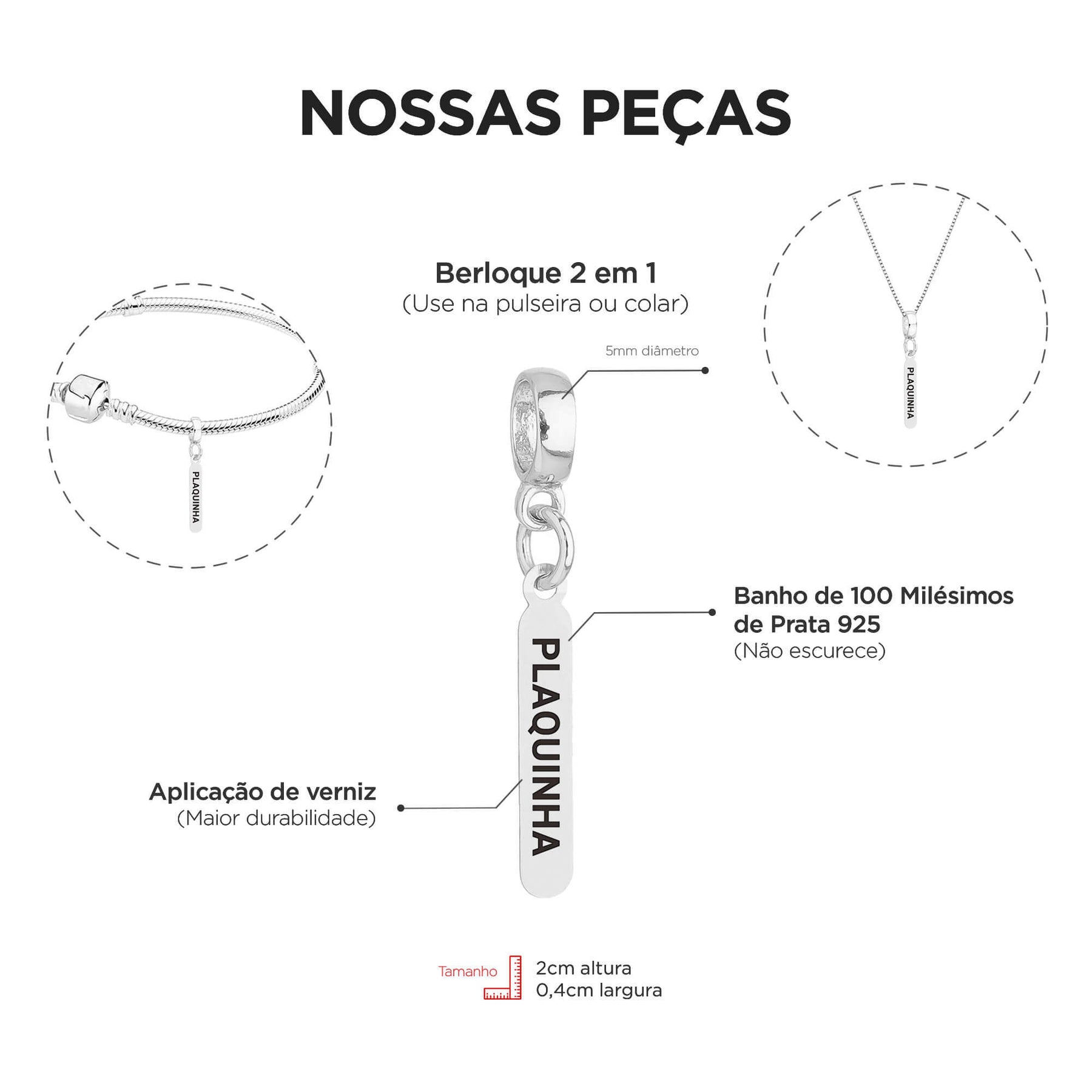 MODELO: Berloque plaquinha de 5K de Seguidores banhado com 100 milésimos de prata 925.