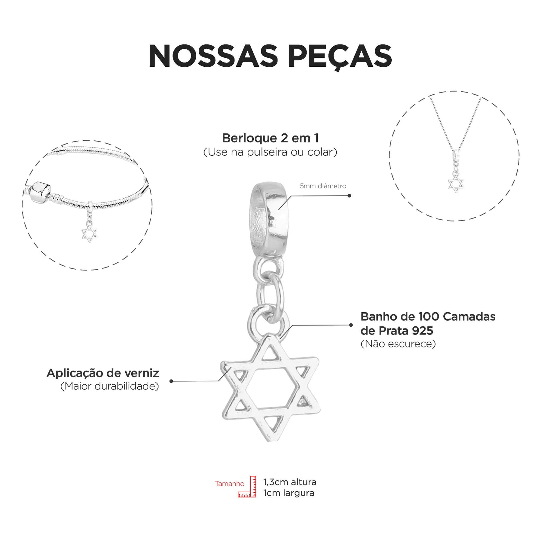 MODELO: Berloque de estrela de 6 pontas banhado com 100 milésimos de Prata 925.
