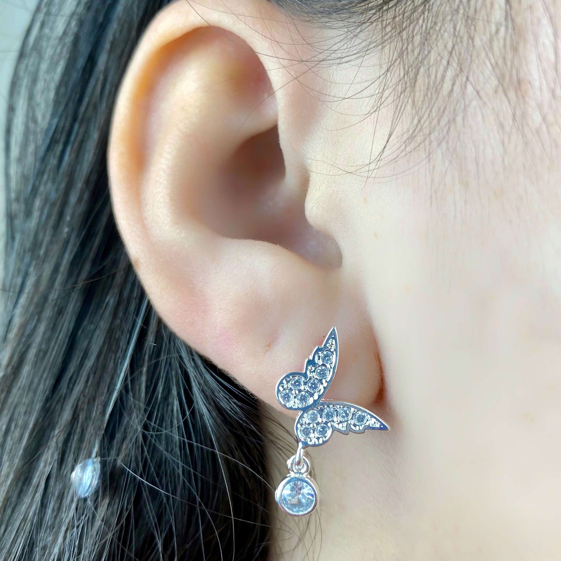 MODELO: Brinco Borboleta com Pedras banhado com 100 milésimos de prata 925.