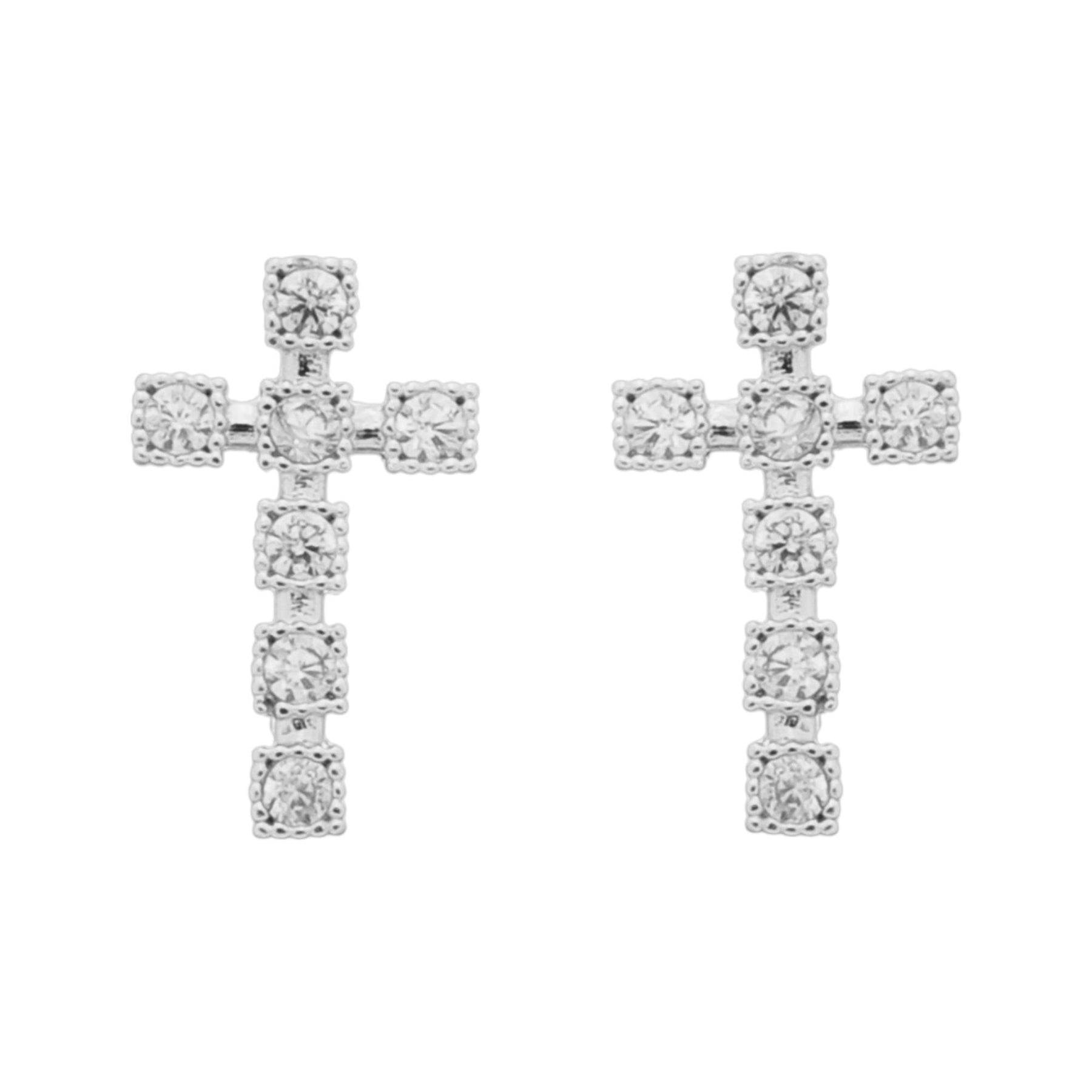 MODELO: Brinco Cruz Cravejada Zirconia banhado com 100 milésimos de prata 925.