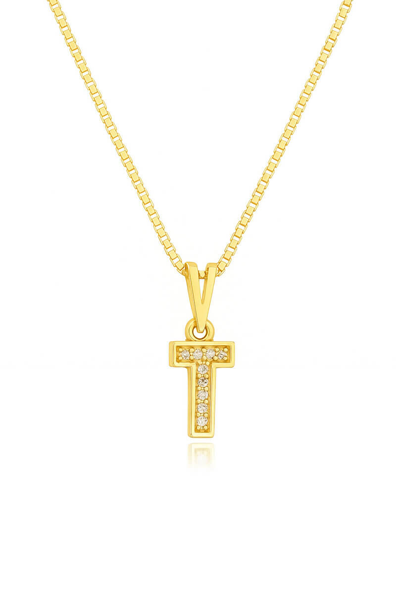 Colar Pingente Letra T Cravejado...
