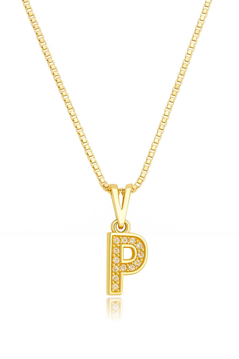 Colar Pingente Letra P Cravejado...