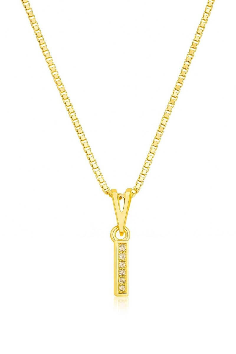 Colar Pingente Letra I Cravejado...