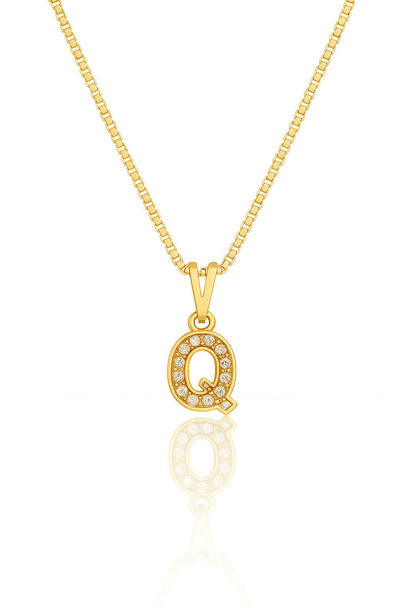 Colar Pingente Letra Q Cravejado Banhado a Ouro 18k