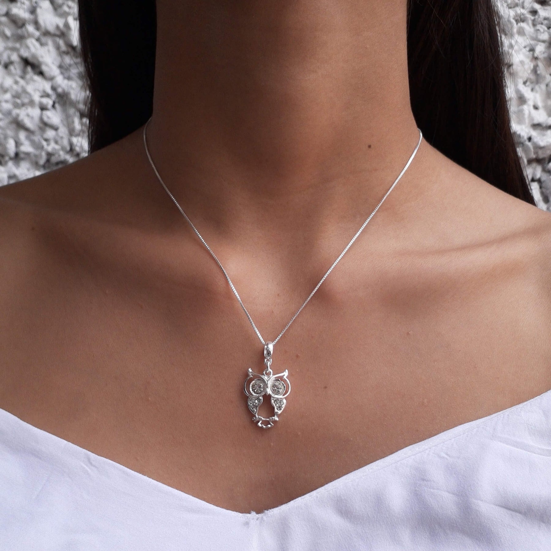 MODELO: Colar Feminino de Coruja banhado com 100 milésimos de prata 925.