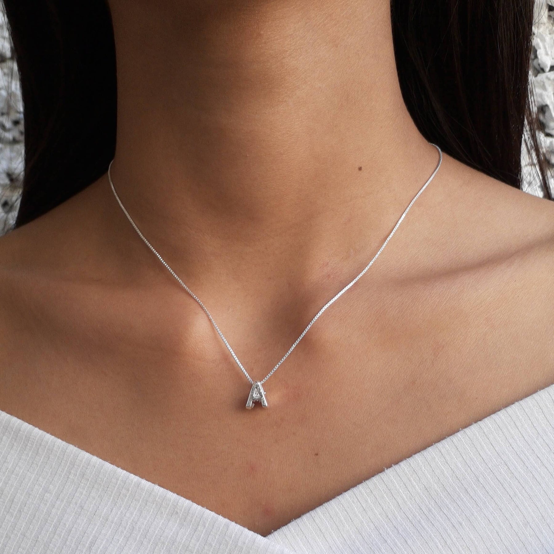 MODELO: Colar feminino de Letra A banhado com 100 milésimos de prata 925.