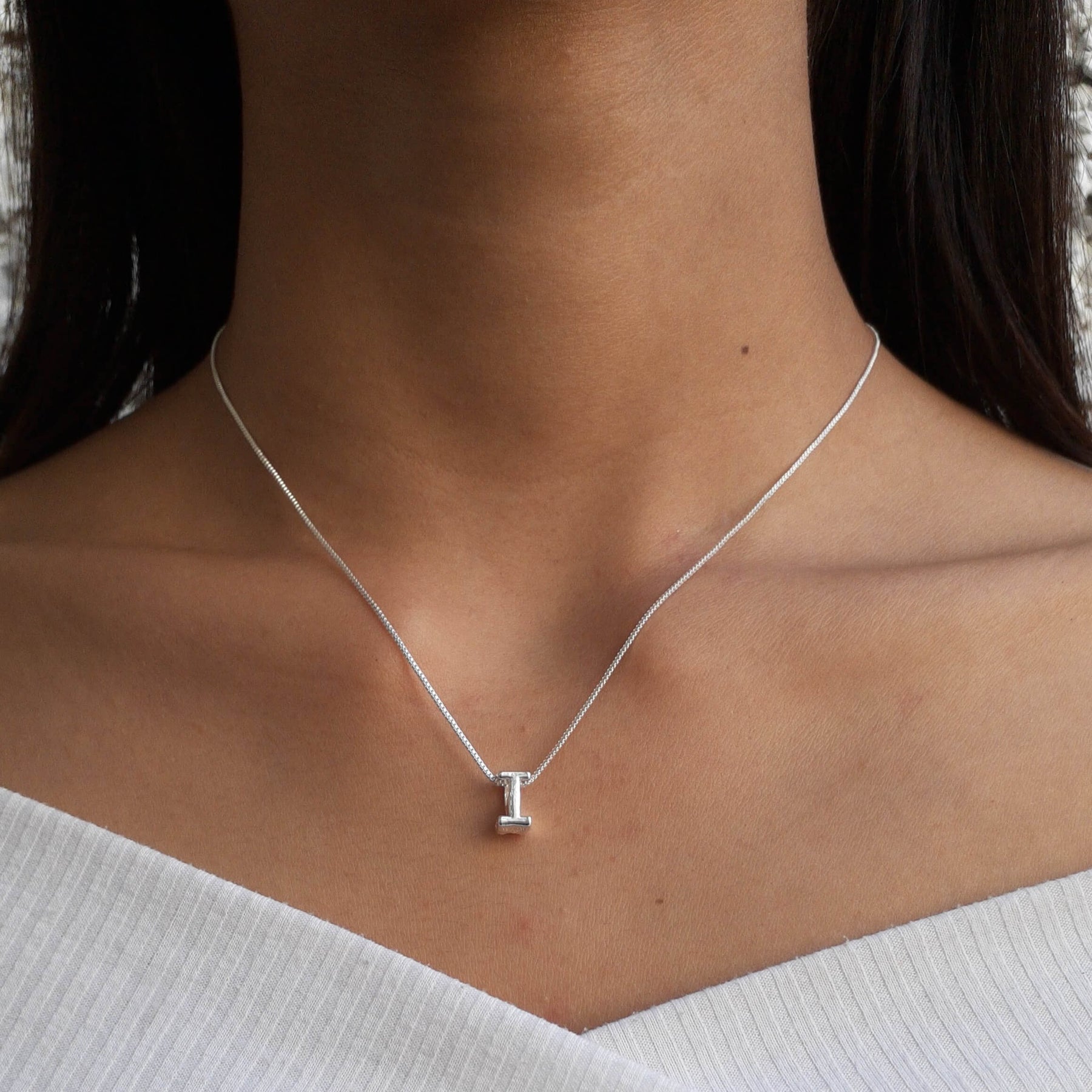 MODELO: Colar feminino de Letra I banhado com 100 milésimos de prata 925.