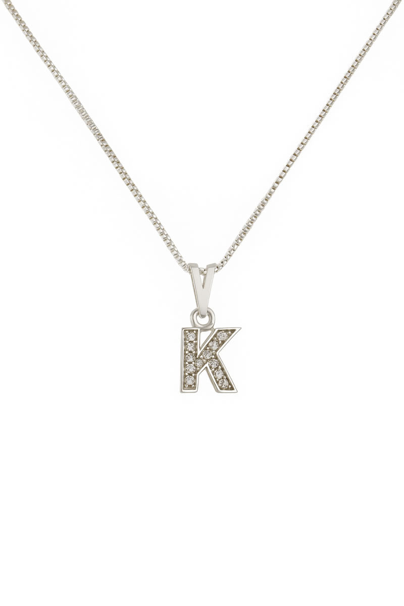 Colar Pingente Letra K Cravejado Banhado a Prata 925