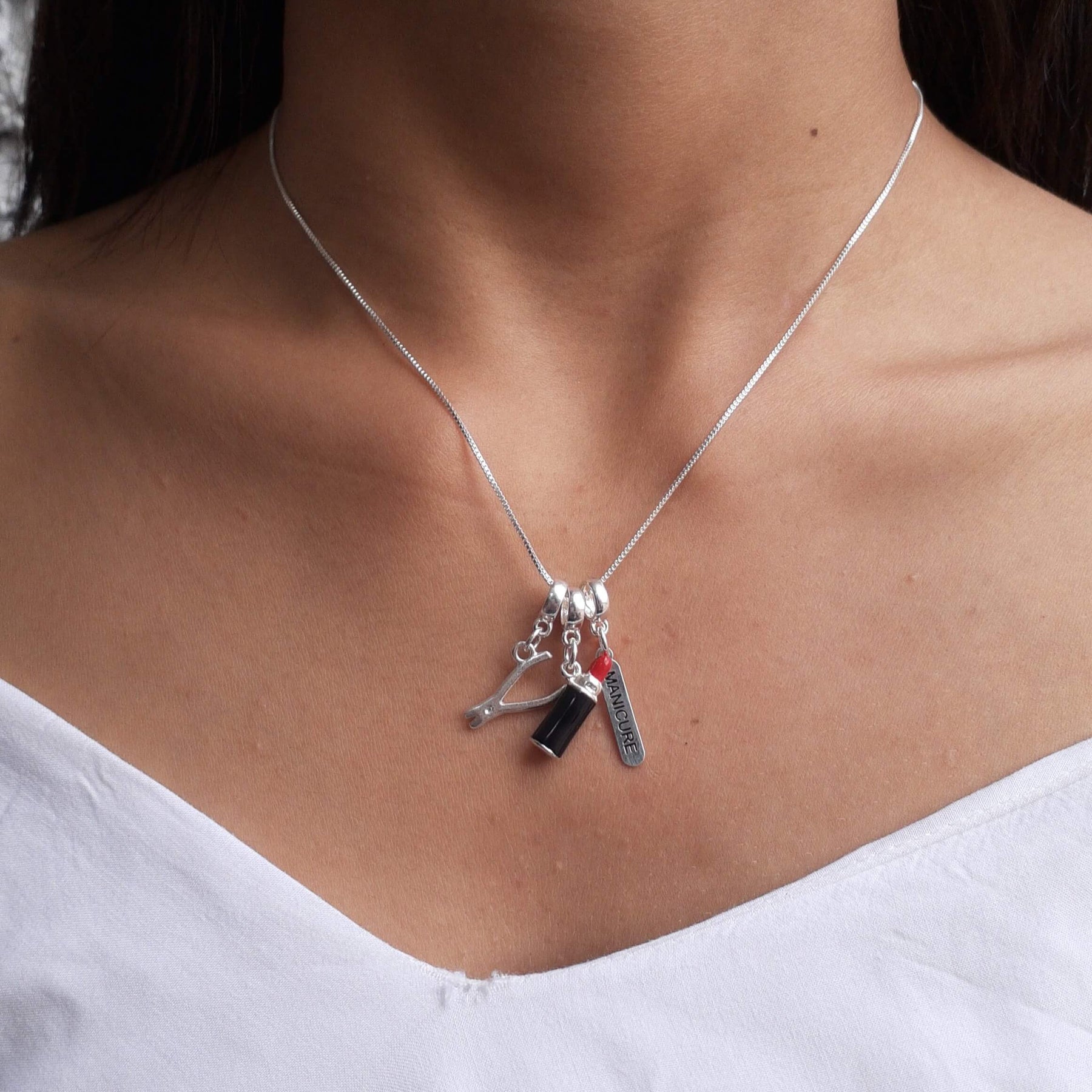 MODELO: Colar feminino de Profissão Manicure banhado com 100 milésimos de prata 925.