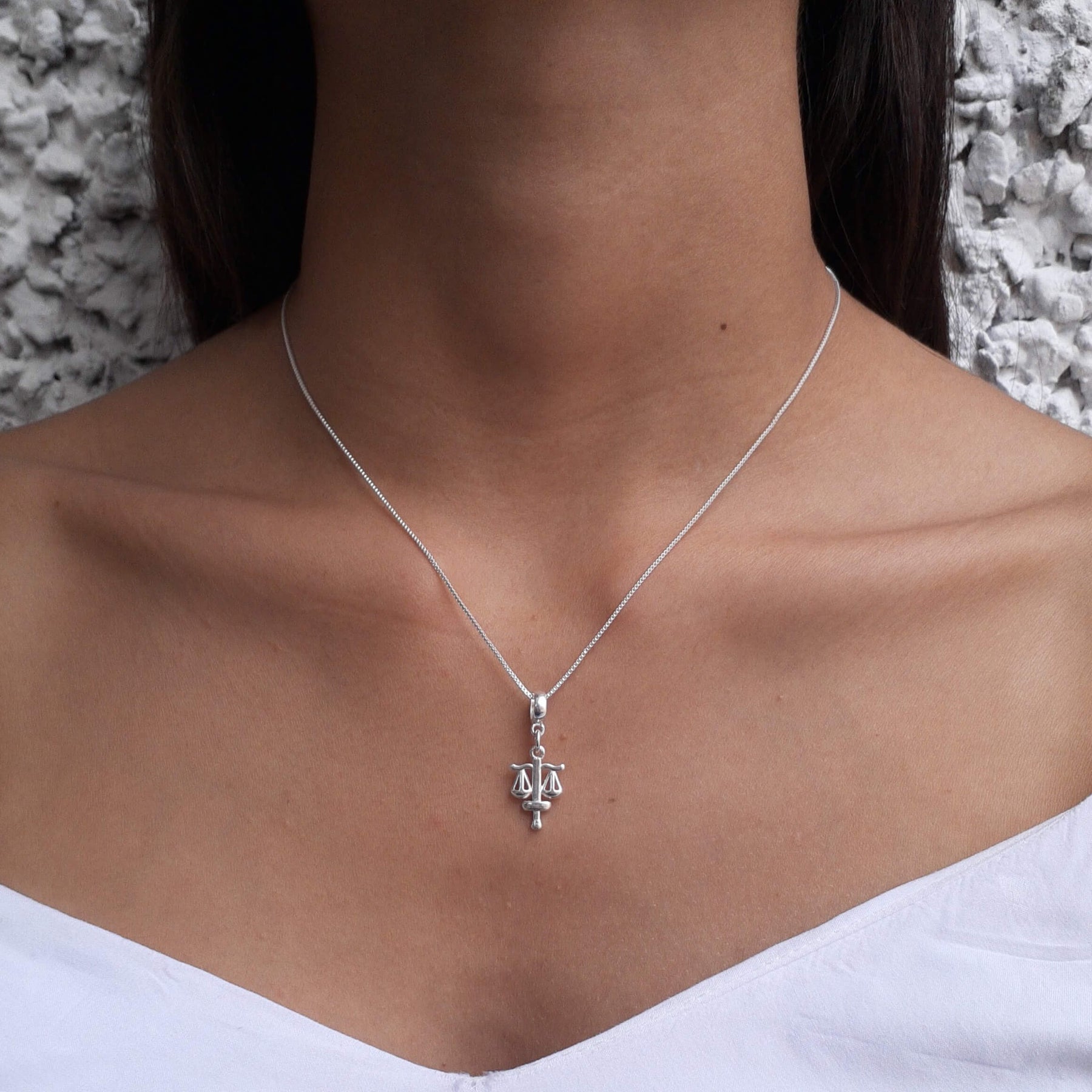 MODELO: Colar feminino de Símbolo Direito banhado com 100 milésimos de prata 925.