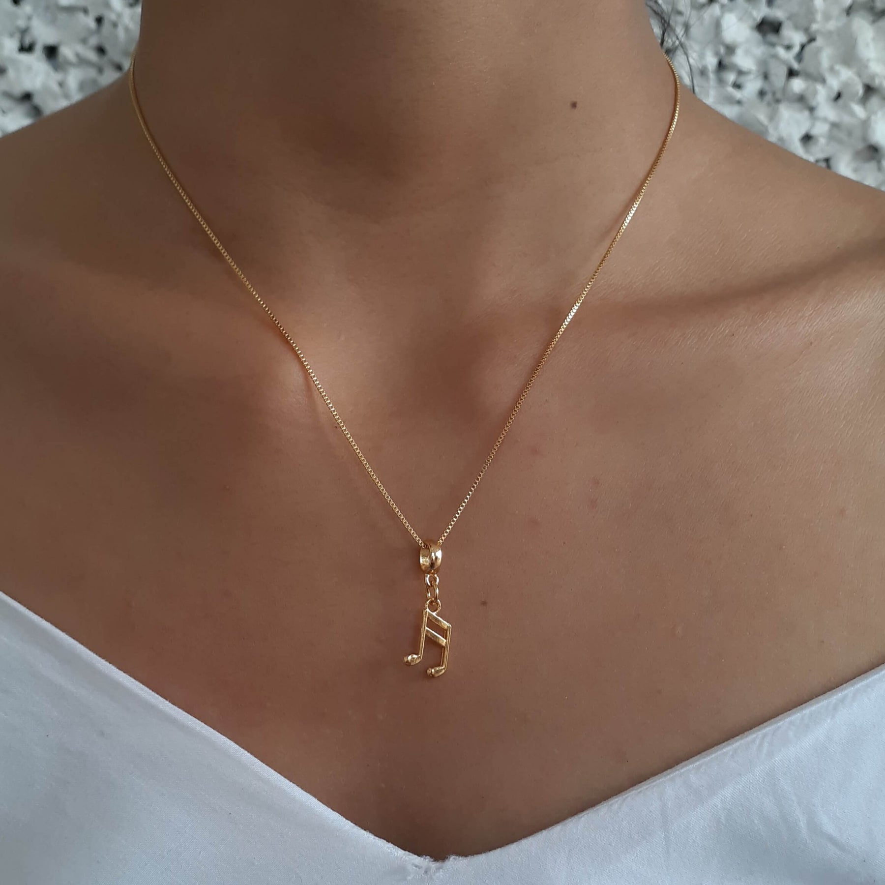 MODELO: Colar feminino de Nota Musical banhado com 7 milésimos de ouro 18k.